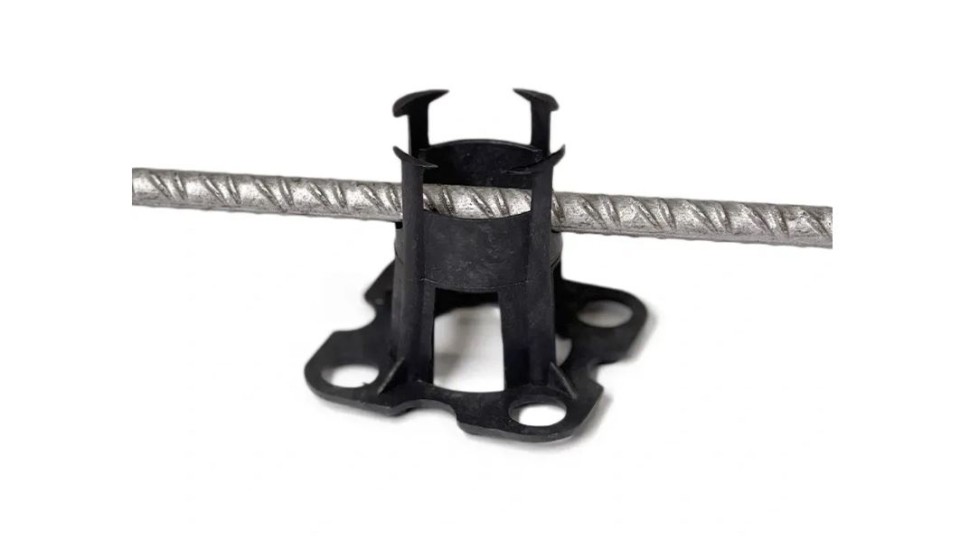 Фіксатор для арматури «Настил» застосовується для формування захисного шару горизонтальної арматури на м'якій основі (щебінь, пісок, пінополістирол). Фіксатори дозволяють розміщувати арматуру на потрібній відстані від основи та стін опалубки.