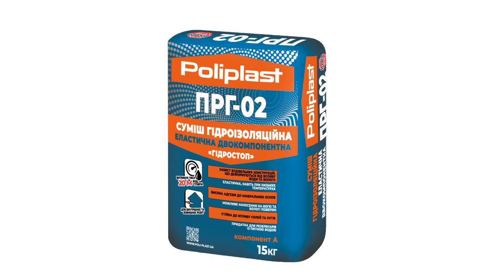 Суміш гидроізоляційна високоеластична двокомпонентна "Гідростоп" ПоліПласт ПРГ-02 (15 кг+5л)