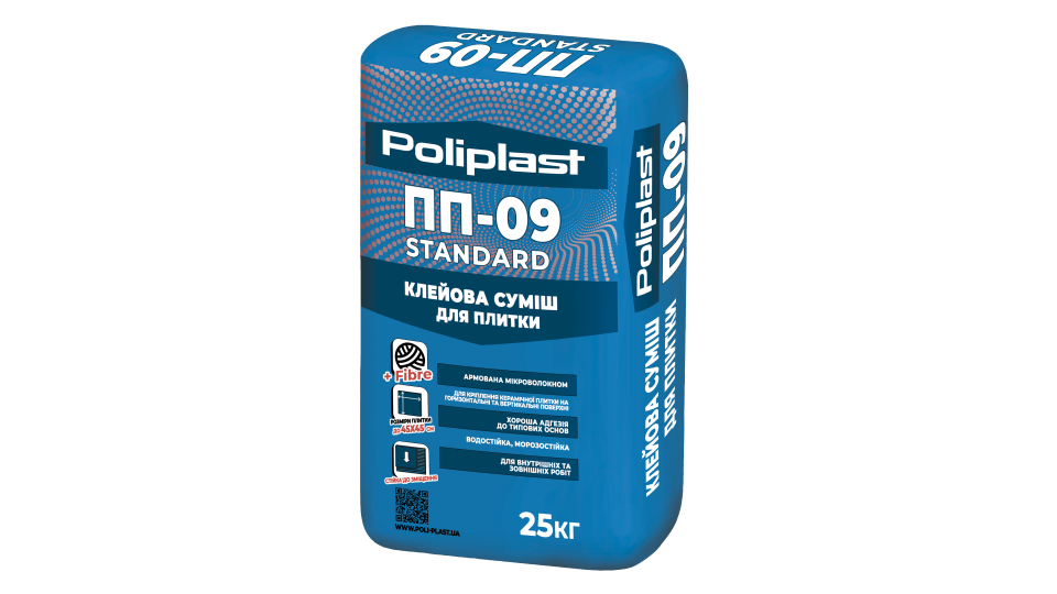 Суміш клейова для плитки ПоліПласт ПП-09 STANDARD (25 кг).