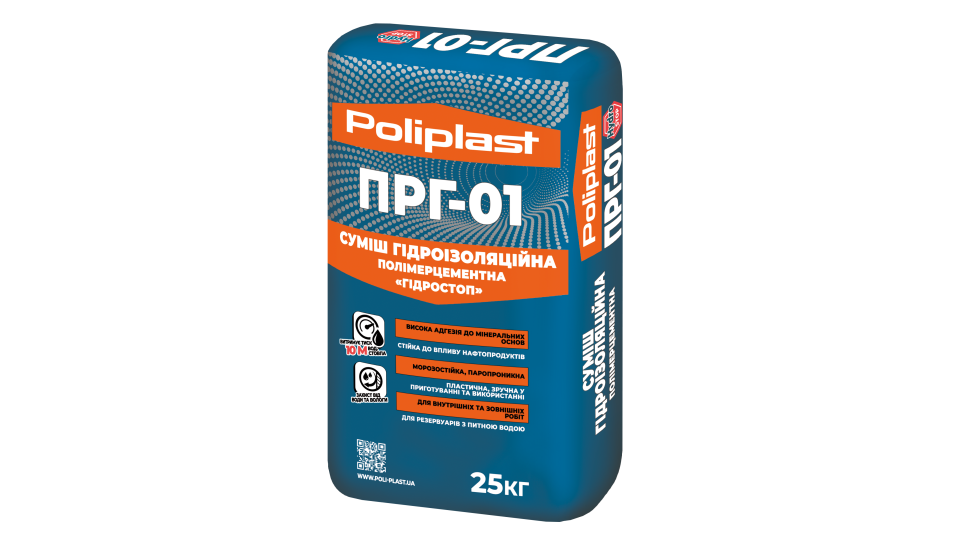 Суміш гидроізоляційна полімерцементна "Гідростоп" ПоліПласт ПРГ-01 (25 кг)